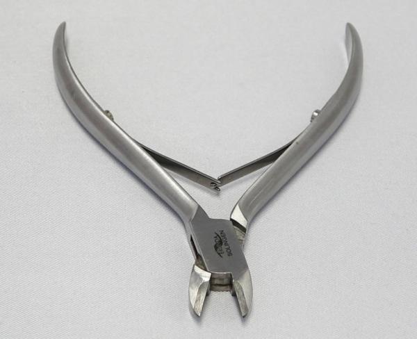 Orthonyxiedraht lässt sich mit dieser Zange ohne viel Kraftaufwand bis zu einer dicke von 0,6 mm präzise und sauber zerschneiden.